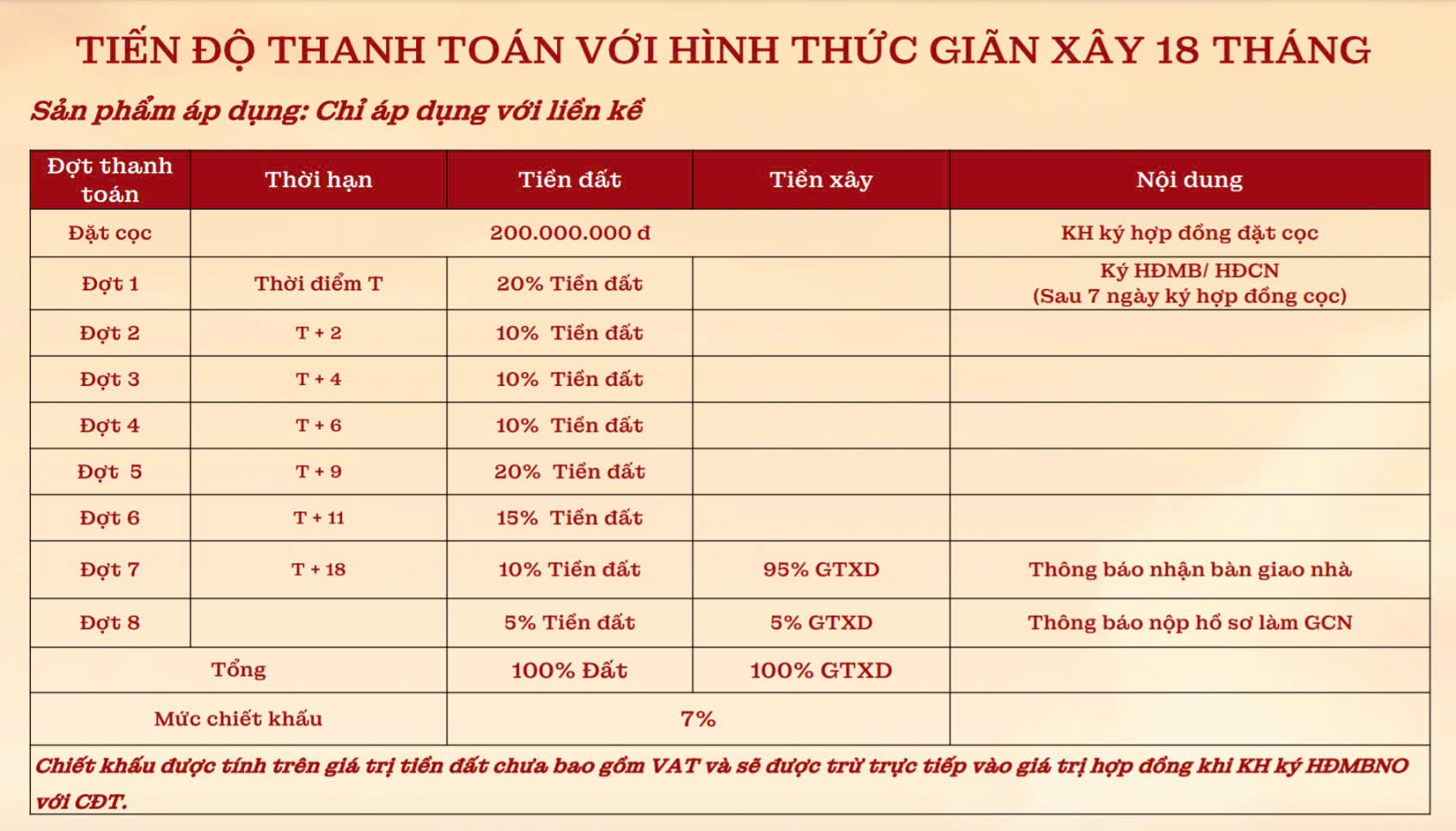 💥Không lo áp lực về tài chính với tiến độ thanh toán 7 đợt linh hoạt trong 18 tháng.