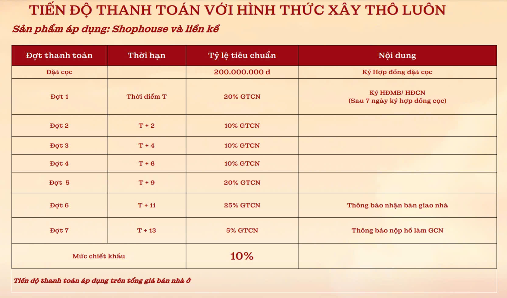 💥 Chiết khấu đến 15% giá trị tiền đất, khi thanh toán theo tiến độ thông thường.